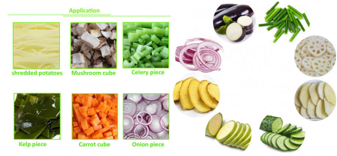 1. पत्ती सब्जियां: यह लंबी पट्टी प्याज, लहसुन, अजवाइन, चीनी गोभी, आदि को काट सकती है, कन्वेयर बेल्ट की गति और काटने वाले चाकू को आवृत्ति कनवर्टर द्वारा नियंत्रित किया जाता है, यह काटने के आकार को समायोजित कर सकता है;
